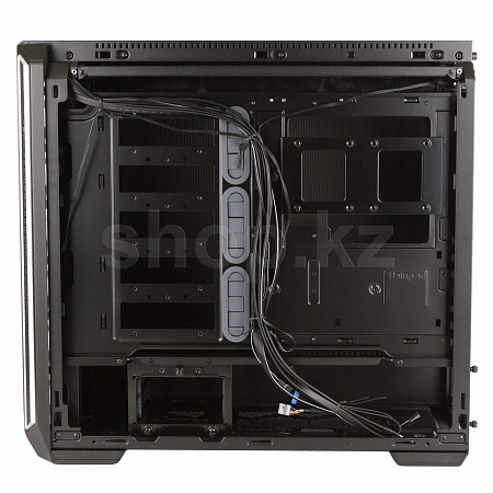 Кожух блока питания скрывает кабели, блок питания и вмещает двойной слот HDD. Съемные сегменты кожуха позволяют установить на него дополнительный 120мм вентилятор или радиатор СВО длиной до 360мм в фронтальной части корпуса.