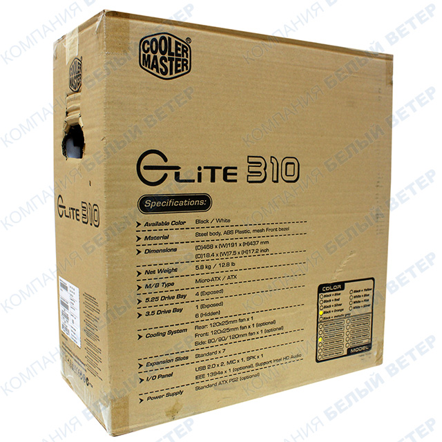 Cooler Master Elite 310 представляет собой корпус формата Midi-Tower, совместимый с материнскими платами форматов Micro-ATX и ATX. Как и все корпуса серии Elite модель 310 отличается привлекательным дизайном, компактностью, высоким качеством в сочетании с невысокой стоимостью и будет прекрасно смотреться в любом помещении.