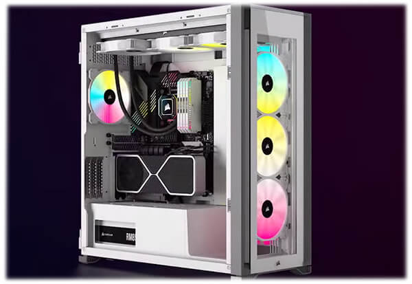 CORSAIR 7000D AIRFLOW — это корпус формата Full-Tower ATX для создания наиболее амбициозных сборок, обладающий невероятным потенциалом охлаждения благодаря оптимизированной для нагнетания воздушного потока стальной передней панели и оснащенный системой скрытой прокладки кабелей и тремя входящими в комплект вентиляторами CORSAIR AirGuide.