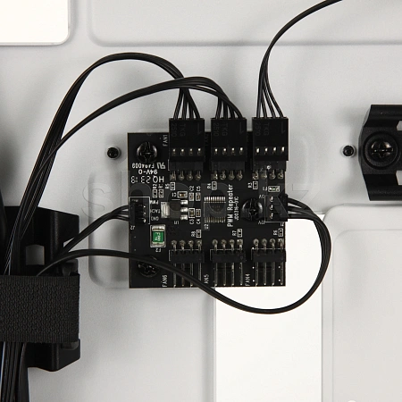 ШИМ-повторитель вентиляторов управляет входящими в комплект вентиляторами, к которым можно подключить до шести вентиляторов. Уменьшите скорость вращения вентиляторов, если хотите сохранить тишину в системе, или увеличьте, если хотите увеличить ее производительность, и все это с помощью одного 4-контактного ШИМ-разъема на материнской плате.