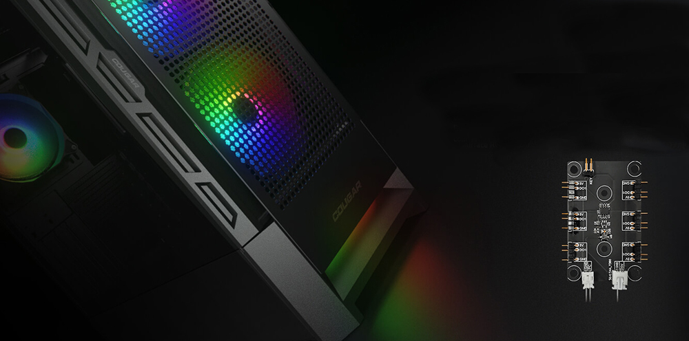 Airface RGB имеет два массивных 140-мм вентилятора ARGB, один 120-мм вентилятор ARGB и выделенный логотип. Вы можете управлять несколькими удивительными световыми эффектами с помощью специальной кнопки RGB. Встроенный светодиодный контроллер совместим с разъемом материнской платы 5V ARGB для синхронизации освещения в масштабе всей системы