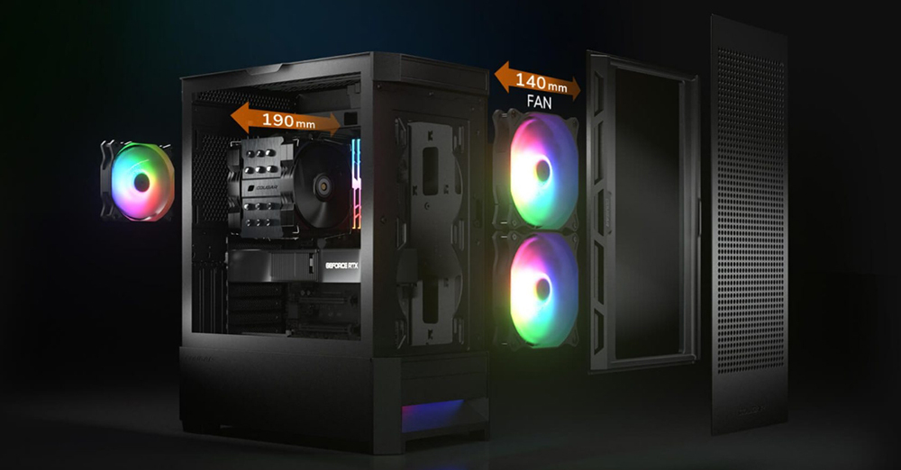 Внутреннее пространство Airface RGB поддерживает до пяти вентиляторов, 280-мм радиатор водяного охлаждения и процессорный кулер высотой 190 мм. Этот огромный потенциал охлаждения предотвращает перегрев критически важных компонентов