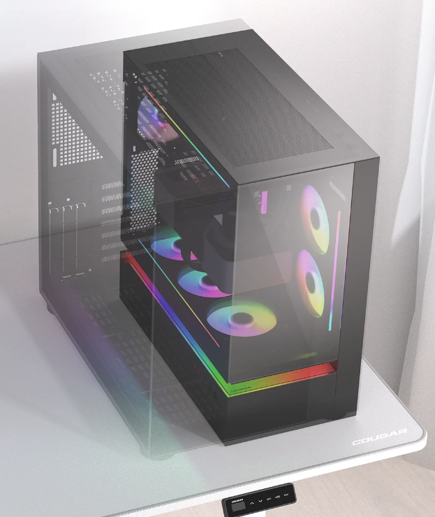 На материнской плате предустановлены однорамные вентиляторы COUGAR Unity ARGB 240 с ШИМ-управлением и обратными лопастями, обеспечивающие точное управление скоростью вращения, исключительное охлаждение, практически бесшумную работу и потрясающую RGB-подсветку прямо из коробки.