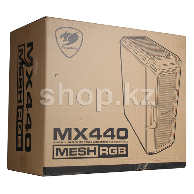 Дизайн MX440 Mesh RGB является продолжением культового стиля Cougar. Передняя панель, выполненная в сетчатом дизайне, с тремя вентиляторами ARGB обеспечивают потрясающий внешний вид. Кроме того, он имеет достаточно большое внутреннее пространство, что позволяет размещать в нем комплектующие без ущерба охлаждению.