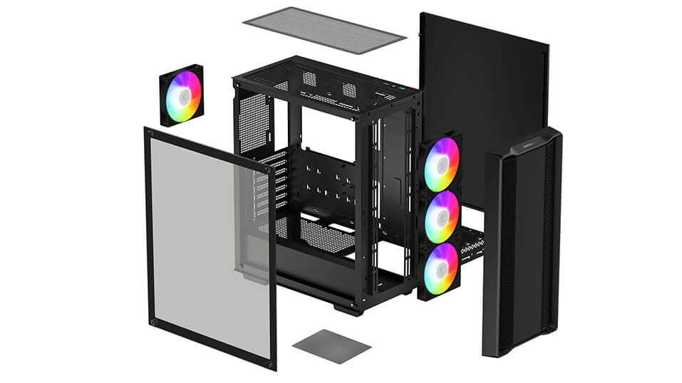 Хорошо вентилируемый по всему корпусу, CC560 ARGB V2 оснащен передней панелью обеспечивающий приток воздуха извне, посадочными местами для вентиляторов на кожухе блока питания и большой сетчатой верхней панелью для свободной циркуляции свежего воздуха.
