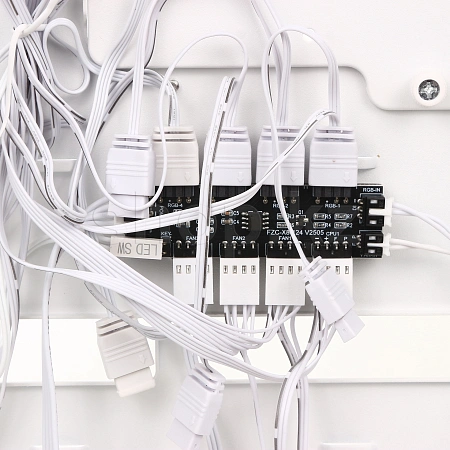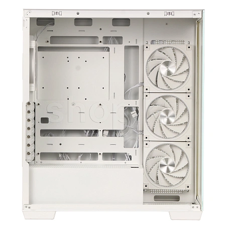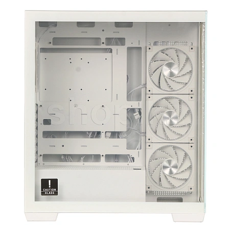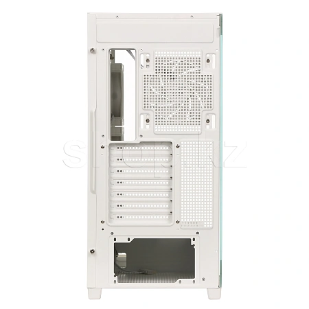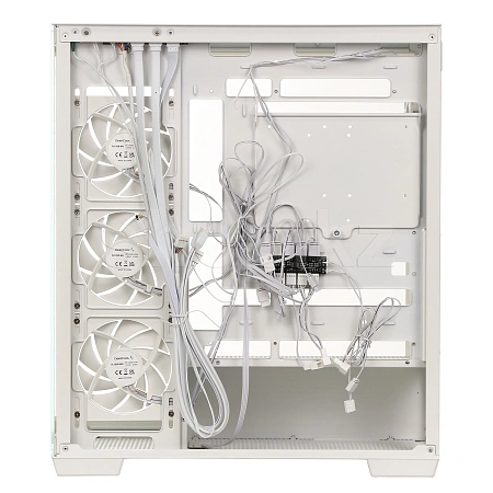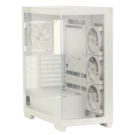 CG580 4F V2 WH выделяется предустановленной системой охлаждения, состоящей из трех реверсивных ARGB-вентиляторов с ШИМ сбоку и одного стандартного ARGB-вентилятора с ШИМ с задней стороны. Эта конфигурация формирует оптимальный воздушный поток для более эффективного отвода тепла. Согласованная ARGB-подсветка на рамках и кольцах вентиляторов поддерживает синхронизацию с материнской платой, что позволяет создать единый динамический визуальный эффект. Поддержка