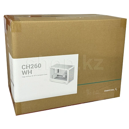 CH260 WH-ITX форма факторындағы классикалық DeepCool ch160 корпусының кеңейтілген нұсқасы. Бұл жаңартылған модель m-ATX өлшеміне дейінгі аналық платаларды орналастырады, сонымен қатар Болат торлы панельдің арқасында керемет үрлеуді мұра етті.