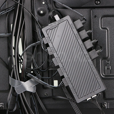 В конструкции используется особая схема отвода тепла: в корпус интегрирован турбинный вентилятор, который формирует внутри ПК Т-образный воздушный поток. Такая аэродинамика позволяет эффективнее охлаждать процессор и другие компоненты системы.