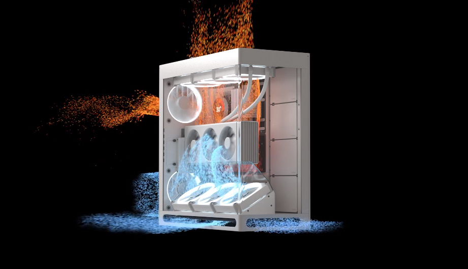 Дополнительный воздухозаборник в нижней части задней панели направляет холодный воздух непосредственно к видеокарте, идеально балансируя приток и вытяжку. Это обеспечивает пиковую производительность и помогает поддерживать систему в чистом, незапыленном состоянии.