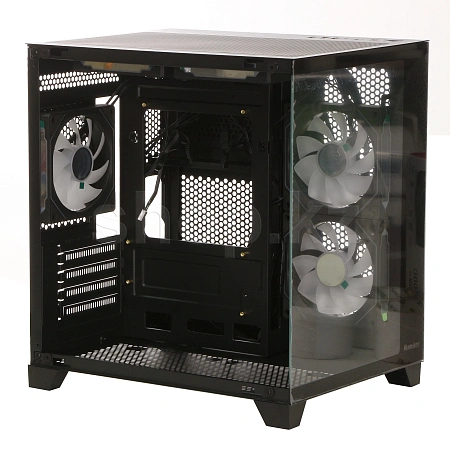 Абсолютно прозрачное закалённое стекло толщиной в 3 мм на двух стенках корпуса, включая 90° угол, создаёт красивую панораму, как в аквариуме, и привносит удивительное визуальное удовлетворение.