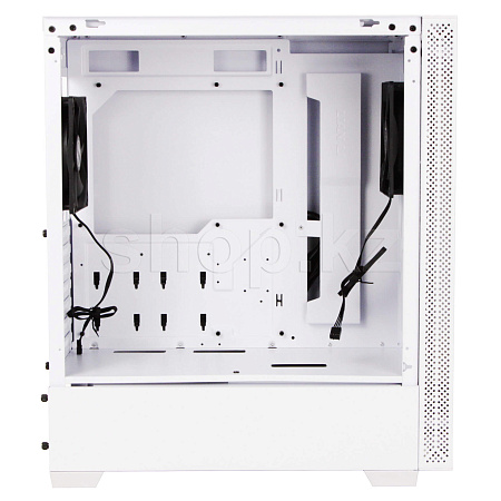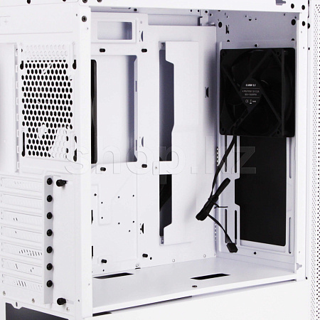 Есть возможность установки радиаторов СВО типоразмера 280 в передней и верхней частях корпуса на съемной рамке. Кроме этого, предусмотрены посадочные места для четырёх 2.5 и пары 3.5-дюймовых накопителей. В комплект поставки включены два 120-мм вентилятора, установленные спереди и сзади, а также три магнитных пылевых фильтра.