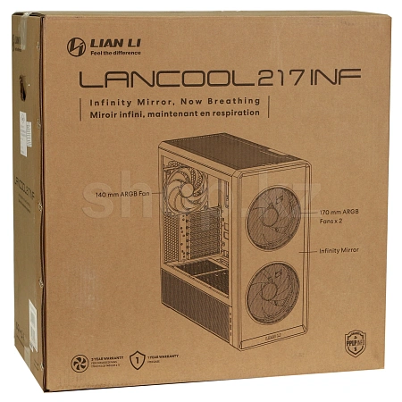 LANCOOL 217 INF обеспечивает отличную совместимость. Помимо входящих в комплект вентиляторов 170 и 140 мм, он поддерживает установку нескольких дополнительных вентиляторов и позволяет установить радиатор размером до 360 мм общей толщиной менее 85 мм.