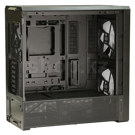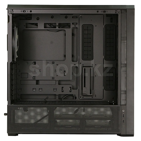Если повернуть блок питания на 90° так, чтобы разъёмы были обращены вправо, он поддерживает компактные блоки питания длиной до 180 мм. Это оптимизирует пространство для прокладки кабелей и позволяет вентилятору напрямую охлаждать блок питания, повышая эффективность охлаждения. Пользователи также могут спрятать два нижних вентилятора под кронштейном, чтобы сделать сборку более аккуратной и организованной.