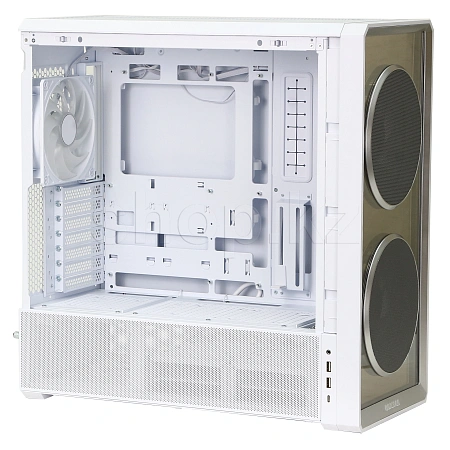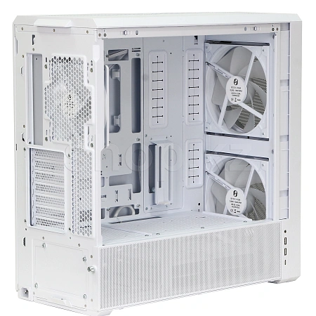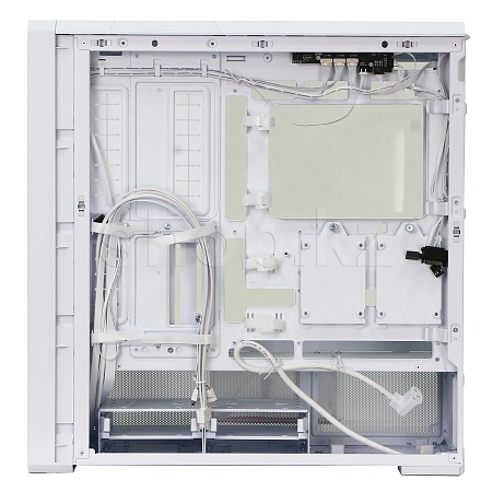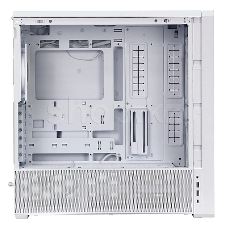 Если повернуть блок питания на 90° так, чтобы разъёмы были обращены вправо, он поддерживает компактные блоки питания длиной до 180 мм. Это оптимизирует пространство для прокладки кабелей и позволяет вентилятору напрямую охлаждать блок питания, повышая эффективность охлаждения. Пользователи также могут спрятать два нижних вентилятора под кронштейном, чтобы сделать сборку более аккуратной и организованной.
