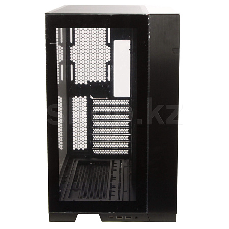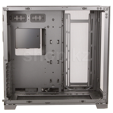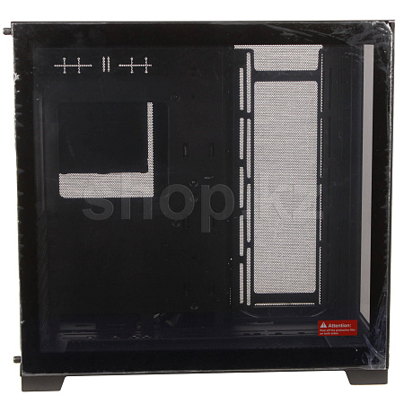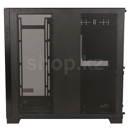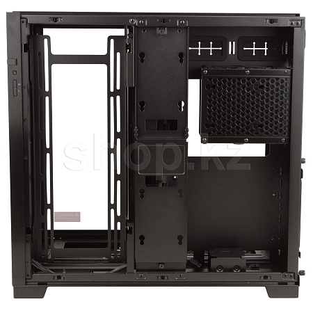 Всего за несколько шагов O11D EVO можно перевернуть в реверсивном режиме, чтобы увидеть передний и боковой вид выставочного зала из закаленного стекла с правой стороны шасси.