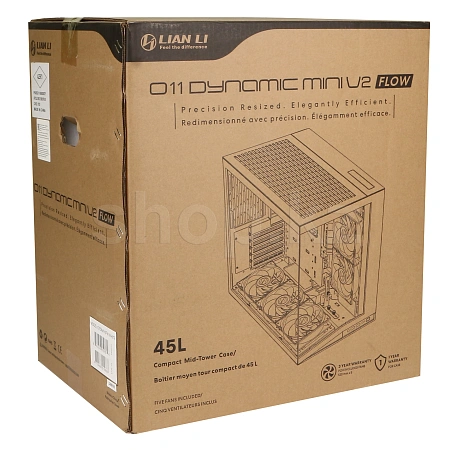 Қиғаш түбінің дизайны мен алдын ала орнатылған желдеткіштер ауа ағынын тікелей графикалық процессорға бағыттайды, салқындату тиімділігін арттырады. Бірдей Шу деңгейіндегі температура сынақтарында O11D MINI V2 FLOW GPU салқындату көрсеткіштерін айтарлықтай жақсартты, бұл lancool 207-ге қарағанда 3.1°c жақсарғанын тіркеді, бұл GPU салқындату тұрғысынан шамамен 6% Жақсы.