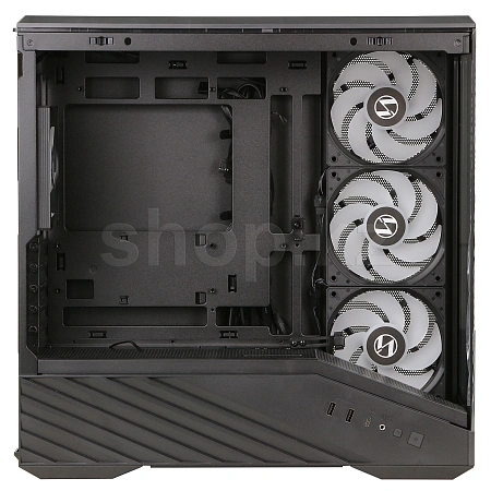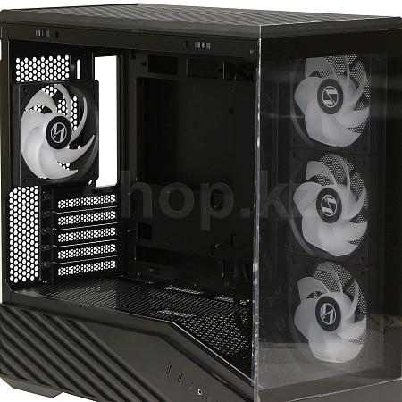 Алдыңғы және бүйірлік панельдер қалыңдығы 4 мм шыңдалған шыныдан жасалған, бұл компоненттердің қысқа заманауи көрінісі мен жақсы көрінуін қамтамасыз етеді. RGB артқы жарығы барлық жағынан толық көрінеді және оны бірден бір түймемен реттеуге болады.
