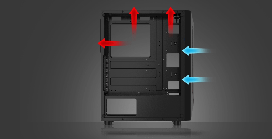 Чтобы гарантировать надлежащее охлаждение компонентов, в корпусе MAG VAMPIRIC 100 можно разместить до 6 вентиляторов.