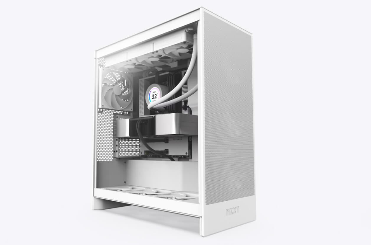 H7 Flow революционизирует охлаждение GPU в классическом форм-факторе mid-tower. Вертикальное расположение блока питания позволяет разместить 3 120-мм вентилятора, обеспечивая эффективное охлаждение без увеличения площади корпуса.