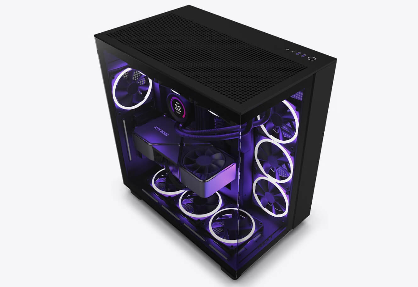 Корпус H9 Flow предназначен для охлаждения мощных графических процессоров благодаря своим широким тепловым возможностям: он рассчитан на десять вентиляторов и множество вариантов крепления 360-миллиметровых радиаторов, а перфорированная верхняя панель обеспечивает еще более эффективное охлаждение.