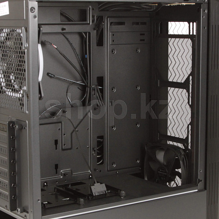 За привлекательной передней панелью установлен 120-мм вентилятор, обеспечивающий поток воздуха через вертикальные воздухозаборники с обеих сторон панели. Еще один 120-мм вентилятор сзади обеспечивает воздушный поток.