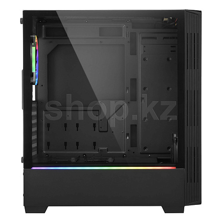 Чтобы подсветка аппаратных компонентов не отставало от освещения передней панели, под боковым окном из закаленного стекла прикреплена адресуемая LED лента. Это обеспечивает дополнительные эффекты и полное освещение корпуса