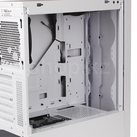 RGB Slider предназначен для обеспечения достаточных возможностей установки для оптимального воздушного потока. В задней части корпуса предварительно установлен 120-мм вентилятор, готовый выпускать теплый воздух наружу. При желании в корпусе можно установить больше вентиляторов: за передней панелью есть место для трех дополнительных 120-мм вентиляторов. Под верхней панелью также можно установить два 120-мм вентилятора или два более крупных 140-мм вентилятора. В туннель также можно установить 120-мм вентилятор для дополнительного охлаждения накопителей.