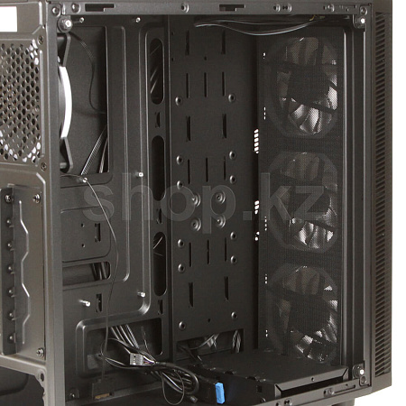 Передняя часть из воздухопроницаемой сетки обеспечивает постоянную вентиляцию всего корпуса. Три 120-мм вентилятора с RGB LED подсветкой на передней панели корпуса и еще один на задней панели обеспечивают должное охлаждение.