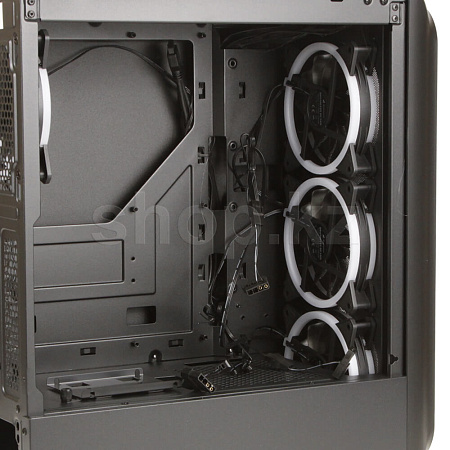 Корпус TK5M RGB побеждает во всех категориях: воздухопроницаемая сетчатая передняя панель и четыре предустановленных 120-мм RGB LED вентилятора обеспечивают хороший результат для охлаждения оборудования. Панель ввода-вывода оснащена двумя портами USB 3.0 и даже имеет порт для USB Type-C 3.2 Gen 2. Боковая панель из закаленного стекла позволяет глубоко заглянуть внутрь корпуса, который можно ярко осветить с помощью 4-портовый RGB контроллер с 14 выбираемыми режимами подсветки.