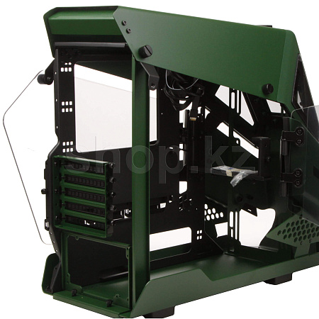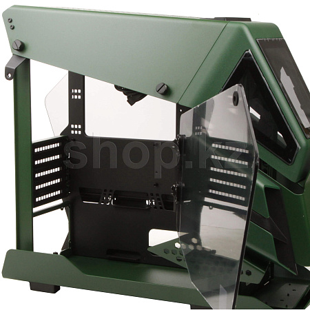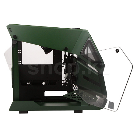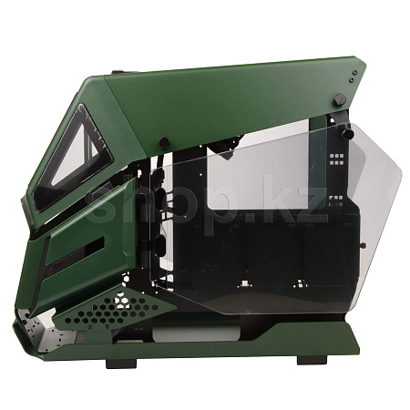 Лимитированная модель корпуса серии AH T200, Racing Green Edition! Как и у старшего брата, его боковые панели выполнены из закаленного стекла толщиной 4мм. Верхняя часть передней панели напоминает военный вертолет и имеет три окошка, из закаленного стекла, но толщиной 3мм. В верхней части расположились порты ввода/вывода с футуристичной кнопкой включения.