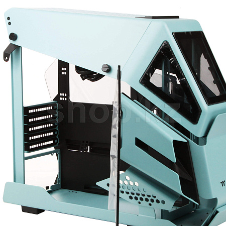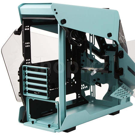 Лимитированная модель корпуса серии AH T200, Turquoise Edition! Как и у старшего брата, его боковые панели выполнены из закаленного стекла толщиной 4мм. Верхняя часть передней панели напоминает военный вертолет и имеет три окошка, из закаленного стекла, но толщиной 3мм. В верхней части расположились порты ввода/вывода с футуристичной кнопкой включения.