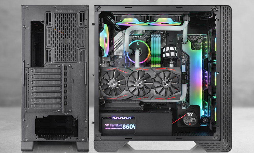 Таким образом, интерьер вашего ПК будет выглядеть максимально аккуратно. В корпусе S300 TG можно устанавливать видеокарты в вертикальной плоскости (лицом к боковой панели корпуса). Такое решение позволяет избежать их провисание, особенно в случае использования водоблока, а также снизить нагрузку на слот PCI-E материнской платы.
