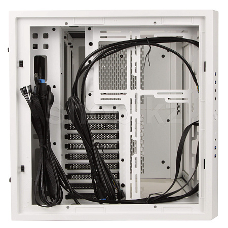 Прилагающийся кронштейн радиатора может быть установлен с правой стороны, для поддержки СВО готового типа с радиатором 360-мм. Внутреннего пространства достаточно для конфигурации вдув-выдув, когда на радиатор можно установить вентиляторы с обоих сторон (максимум до 6 шт).