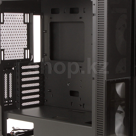 Еще один прекрасный корпус бюджетного класса, с отличной продуваемостью, панелями из закаленного стекла и возможностью установки системы жидкостного охлаждения. Одной из основных отличительных особенностей, это его передняя панель, выполненная из четырёх прямоугольных частей, две из которых выполнены из закаленного стекла, а две другие имеют перфорацию для лучшего притока холодного воздуха.