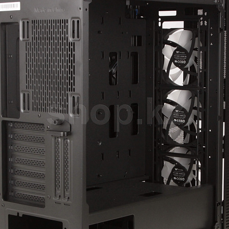 С завода с Versa T26 TG ARGB предустановлено три 120мм ARGB вентилятора спереди. Подсветкой этих вентиляторов можно управлять как програмно, через фирменную утилиту соответствующей материнской платы, либо посредством встроенного аппаратного контроллера в распоряжении которого имеется 27 предустановленных световых профиля.