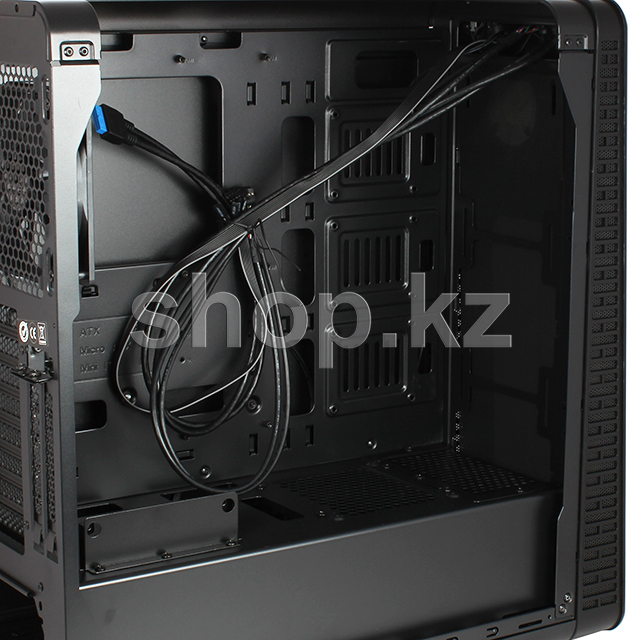 View 28 RGB имеет достаточно места внутри для установки материнских плат с форм фактором вплоть до ATX, двух видеокарт длиной до 410мм (без установки фронтальных вентиляторов) и процессорного кулера высотой до 155мм. Кроме того корпус имеет встроенный кожух для БП, в котором достаточно места, чтобы спрятать неиспользуемые кабеля.