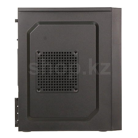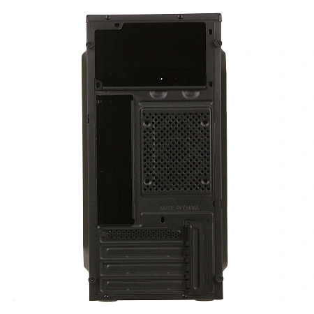 В корпусе предусмотрены опции для установки вентиляторов: на боковой панели — 1×120 мм, на задней — 1×80 мм. Место под систему жидкостного охлаждения не предусмотрено. Боковая панель выполнена из стали — строгий дизайн без стекла или подсветки. Компактность и надежность в мелочи