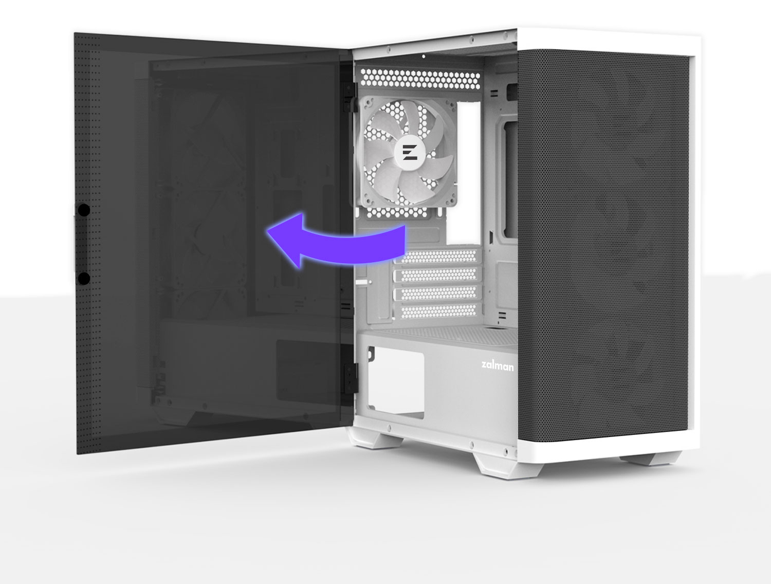 Ощущение единства между передней сеткой и закаленным стеклом на боковой панели создает уникальный дизайн Zalman.