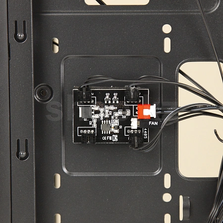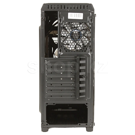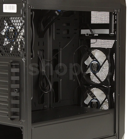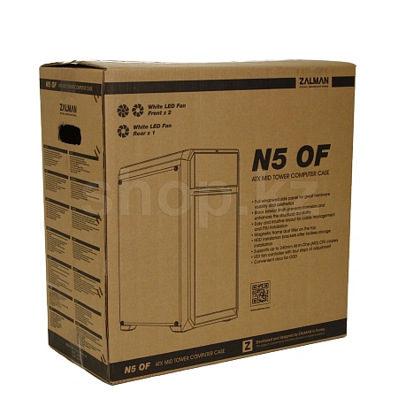 Корпус ZALMAN N5 OF обращает на себя внимание оригинальной конструкцией передней панели и обилием перфорированных элементов. Боковую стенку занимает окно из устойчивого к внешним воздействиям оргстекла. Модель имеет эффектную белую подсветку. Цвет корпуса традиционный – черный.