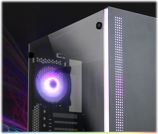 Два предустановленных вентилятора, создают оптимальных воздушный поток для охлаждения системы, а динамический эффект RGB-подсветки делает вашу сборку более привлекательной.