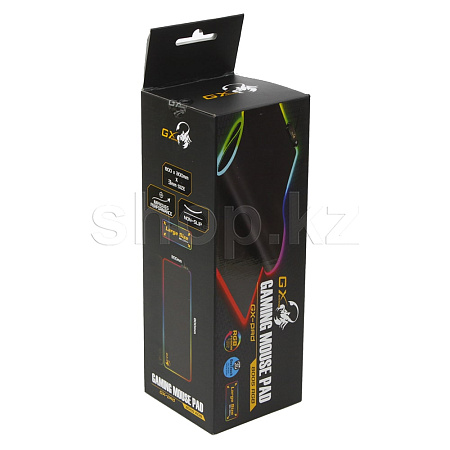 Коврик для мыши Genius GX-Pad 800S RGB с выбором режимов RGB подсветки, противоскользящим резиновым покрытием, и тканевой поверхностью.