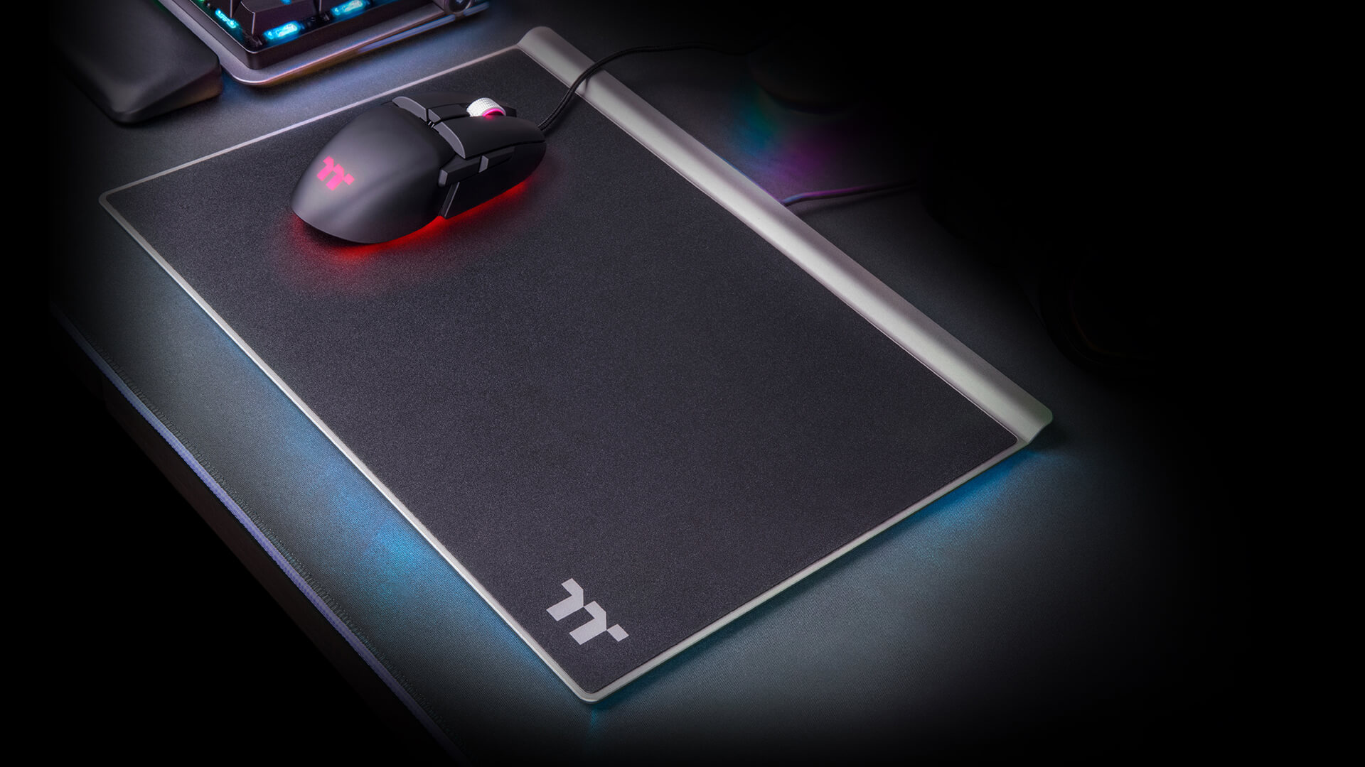 Геймерский коврик для мыши с твердой поверхностью, обеспечивающий быстрый отклик и высокую точность. Конструкция коврика выполнена из высококачественного алюминия, что придает внешнему виду изысканность и стиль. В дополнение, по периметру имеется приятная для глаз RGB подсветка создающая неповторимый ореол характерный всем геймерским девайсам серии ARGENT.
