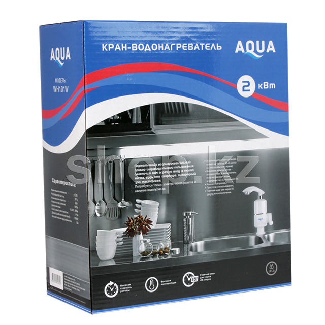 Aqua WH101W – устройство предназначено для нагрева воды всего за несколько секунд до +60° С. Носик крана проворачивается вправо и влево, соответственно устройство пригодно для установки в раковины на одно и два отделения. Процедура установки не займет много времени, так как кран-водонагреватель устанавливается в штатное место в раковине. Автоматический контроль нагрева воды — электричество используется только в момент расхода воды. Так же кран-водонагреватель оборудован защитой от нагрева при отсутствии подачи воды.