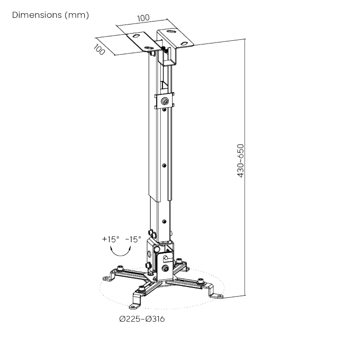Диапазон установки 225~316mm (8.9"~12.4")