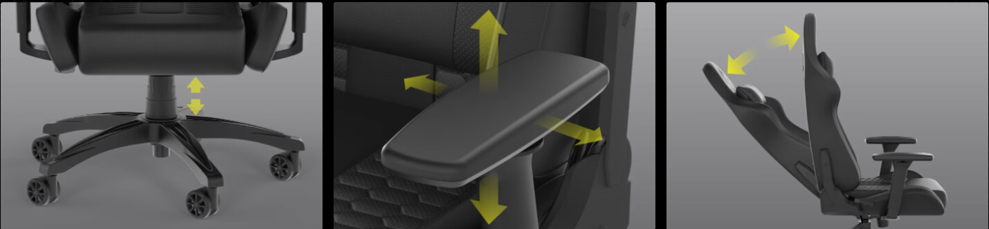 Определите свое идеальное положение в кресле благодаря возможности регулировки высоты, подлокотников и спинки.