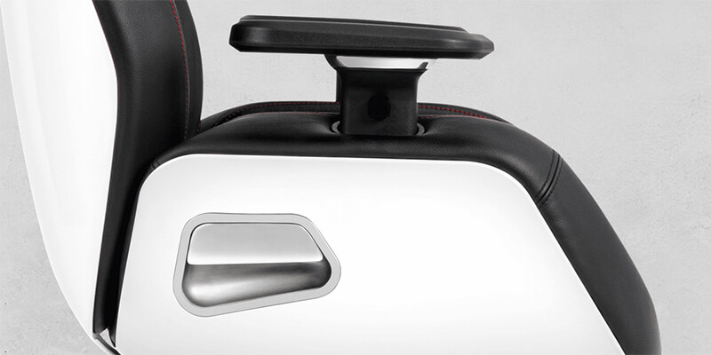 Встроенные боковые ручки позволяют наклонять и поднимать кресло, для выбора оптимального положения. Левая боковая ручка позволяет наклонять спинку сиденья до 126°. Правая боковая ручка регулирует его высоту в диапазоне 41 - 53 см.