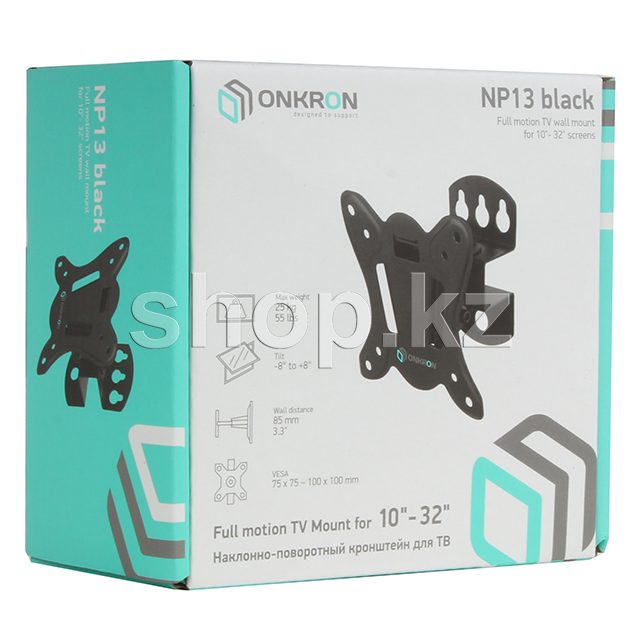 Настенный наклонно-поворотный кронштейн ONKRON NP13 предназначен для дисплеев с диагональю от 10 до 32 дюймов (25.4 - 81.28 см). Он идеально подходит для телевизоров и мониторов с небольшим весом − кронштейн выдерживает до 25 кг. Вас порадуют компактность и аккуратный внешний вид кронштейна, а главным его преимуществом станет универсальность - возможность использования как с телевизором, так и с компьютерным монитором.