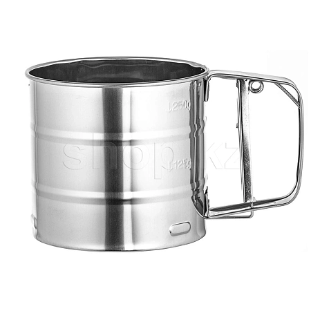 Кружка-сито – незаменимый помощник на вашей кухне. Просеивайте муку, какао, сахарную пудру и другие мелкие сыпучие продукты. Кроме просеивания и очистки, аксессуар разрыхляет, добавляя тесту воздушности. Простой механизм работы: нажатие на рычаг приводит в движение лопасти с сеткой. Рабочая поверхность изготовлена из надежной хромированной стали. Для точного соблюдения рецептуры на кружку нанесены мерные отметки.