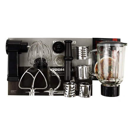 REDMOND RKM-4045 – это мультифункциональная кухонная машина «4 в 1», с помощью которой вы максимально быстро и удобно подготовите ингредиенты для разнообразных блюд и напитков. Благодаря широкому набору комплектующих RKM-4045 заменяет сразу 4 прибора: планетарный миксер, стационарный блендер, овощерезку и мясорубку.