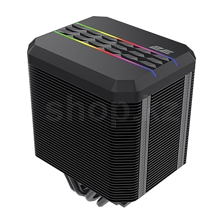 Охлаждение для процессора 2E Gaming Air Cool ACM90D4 с ARGB подсветкой верхнего сегмента декора, встроенным в классическую башенную конструкцию радиатора 90 мм вентилятором на гидравлическом подшипнике.